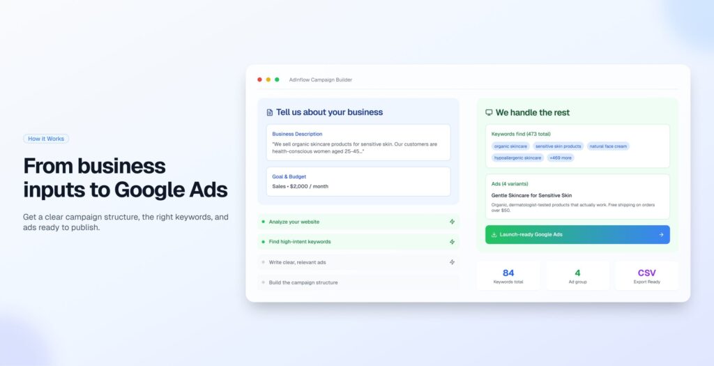 See lähenemine on välja töötatud mitme digitaalse agentuuri ja Google Ads spetsialisti praktilise kogemuse põhjal, sh Weinflow, ning realiseeritud AdInflow AI-platvormis koostöös kogenud arendajatega.