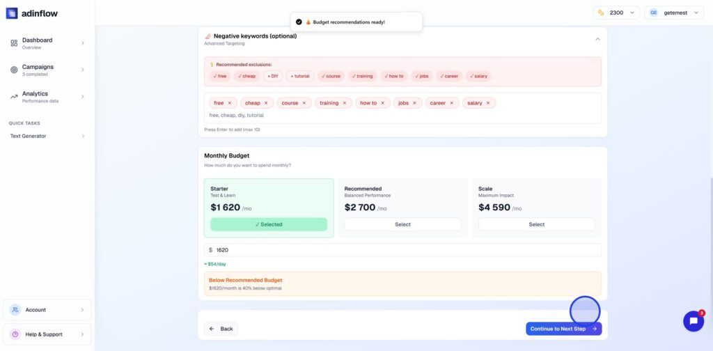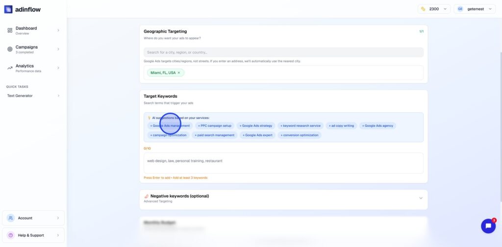 9. samm: lisa negatiivsed märksõnad (ära jäta vahele)