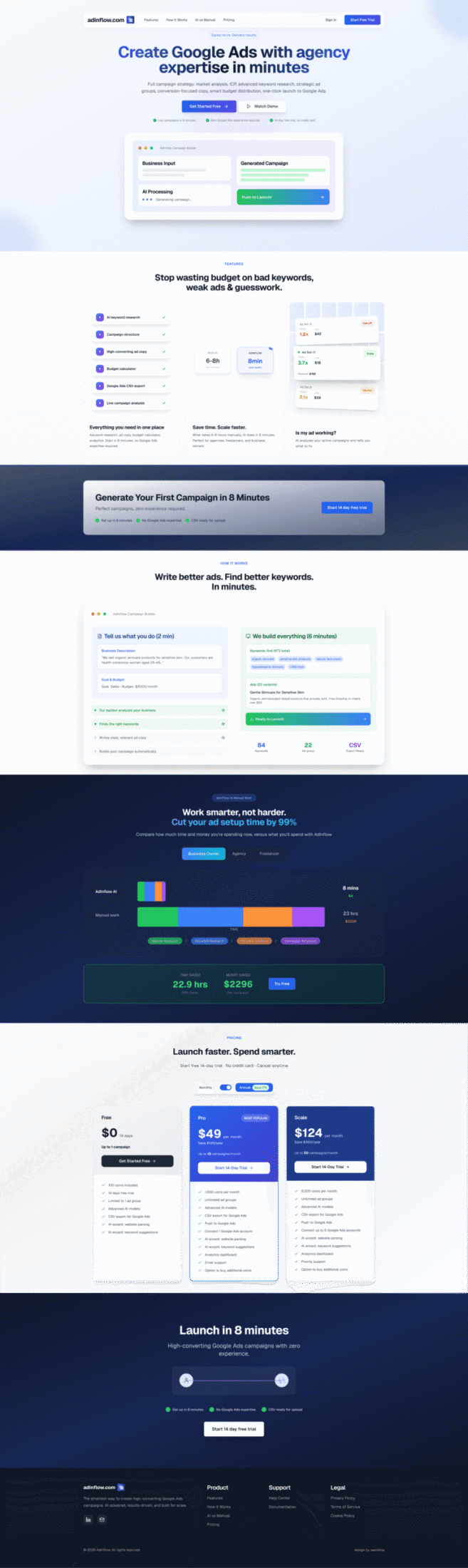 “Adinflow muudab Google Ads’i seadistamise lõpuks lihtsaks. Toode, dashboard ja turundus töötavad koos — täpselt nii, nagu üks SaaS peaks tunduma.”
