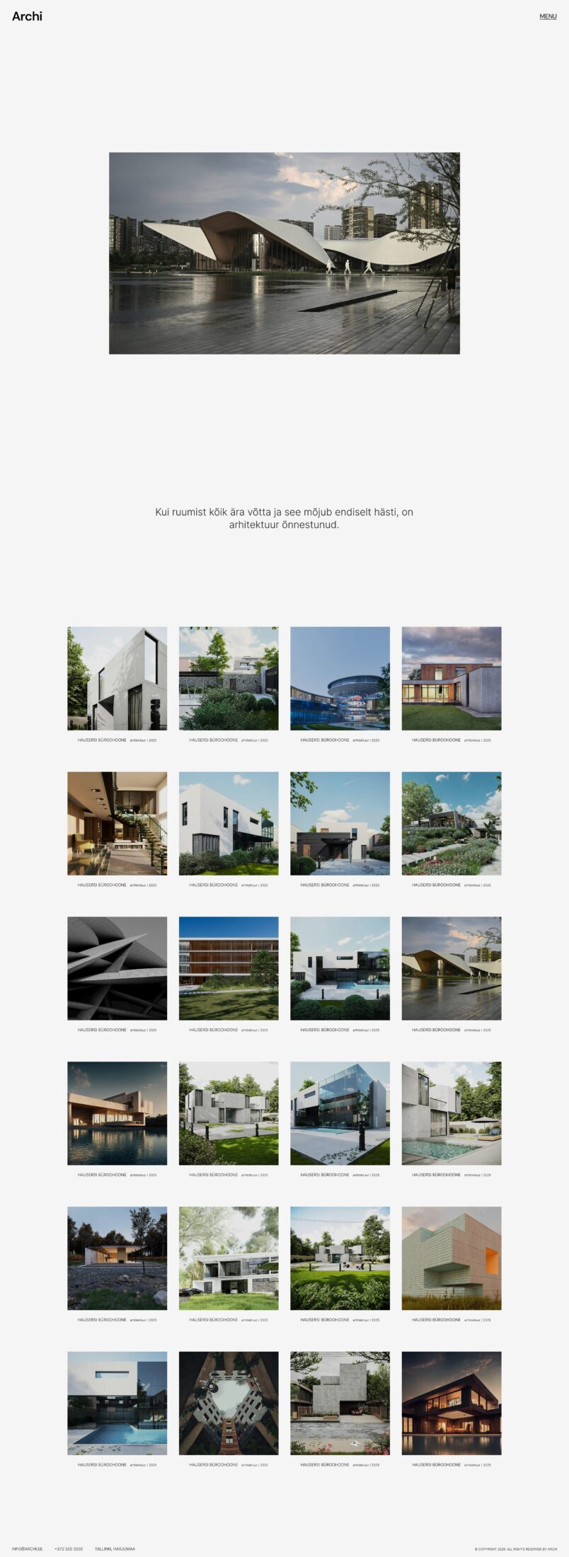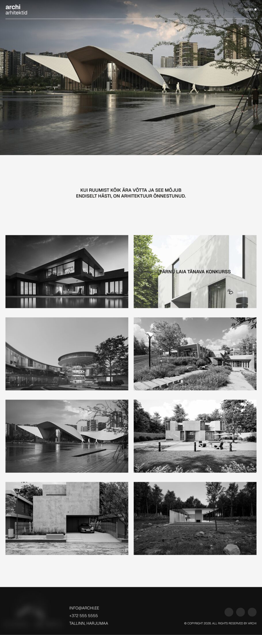 Selle projekti eesmärk oli luua arhitektuuribüroo veebilahenduse prototüüp, mis näitaks, kuidas võiks selline koduleht välja näha siis, kui disain tehakse mitte ainult esteetika, vaid ka loogika, kasutusmugavuse ja konversiooni peale mõeldes.